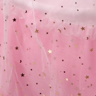 - A doll bed fit for a princess, adorned with a whimsical canopy complete with sparkling lights and delicate mesh fabric