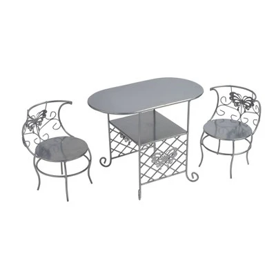 - Tea time for two – the perfect table and chair set for your favorite 18 inch dolls, includes a five piece tin tea set and adorable butterfly details