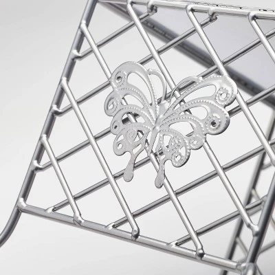 It’s Tea Time for two with Badger Basket’s Metal Doll Table and Chair set with accessories. Adorned with charming butterfly details on the table and seat backs, the set includes a reversible table cloth and 2 removable seat cushions. Set the table with the 5-piece tin tea set, including one teapot with lid, 2 teacups and 2 saucers. Store your tea set on the built in shelf under the table when not in use, the chairs can also tuck under the table for tidy storage. Designed for any brand of 14.5-20 inch dolls such as American Girl, My Life As, Madame Alexander, and Our Generation and 14.5-inch American Girl WellieWishers dolls. Made with metal, 100% polyester fabric, and tin. Imported. Table dimensions: 14 inches L x 7.75 inches W x 10.25 inches H. Shelf height: 6.25 inches. Shelf dimensions: 6.25 inches L x 7.5 inches W x 4 inches H. Table cloth: 13.5 inches L x 7 inches W. Chair dimensions: 7 inches L x 6 inches W x 9.5 inches H. Seat dimensions: 5 inches H x 6 inch diameter. Seat cushions: 6 inch diameter x 0.5 inches H. Tea Pot dimensions: 5.25 inches L x 3.25 inches W x 3.25 inches H. Saucer dimensions: 2.25 inch diameter. Cup: 2 inch diameter x 1.25 inches H. Assembled weight: 4.6 pounds. All measurements approximate. Adult assembly required. Illustrated instructions included. This item is for use with dolls only. /! WARNING: CHOKING HAZARD – Small parts. Not for children under 3 yrs. Product complies with all currently applicable safety standards. Manufacturer’s 30 day limited warranty to the original purchaser. Product may vary slightly from shown and described. Dolls/accessories shown are for illustration purposes only and are not included with the product. Actual color/finish may vary slightly from screen display. This item ships in its original carton that may include a product photo.