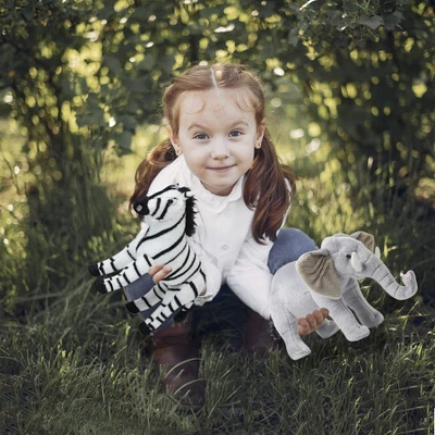 - JUST THE RIGHT SIZE AND WELL-MADE: Each plush safari animal is 8″H x 12”L, big enough to cuddle, but small enough to fit in little arms. Perfectly sized to share a pillow with at night. They are designed with realistic detail, with perfect stitching so they are safe for children and made to last