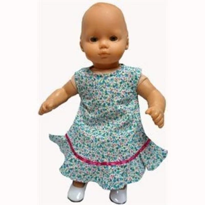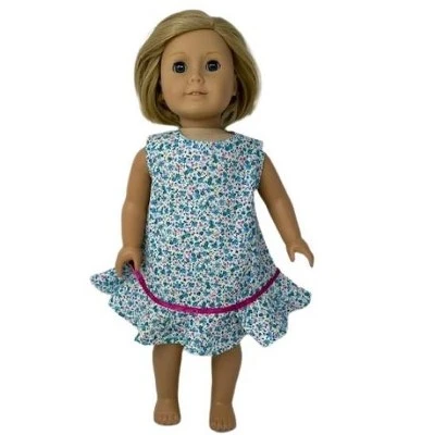 Size 12 Matching Girl And Doll Blue Calico Flowers is cotton blend material with a row of ribbon trim at the top of the ruffle. When lying flat the dress measure 17 inches across the chest from side seam to side seam.The dress measures 33 1/2 inches from the shoulder to the hemThe doll dress will fit 18 inch girl dolls like American girl, Our Generation, My Life and Journey girl dollsIt also fits 15-16 inch baby dolls and Cabbage Patch Kid dollsThis listing is for one girl and one doll dressThe doll and shoes are not included.
