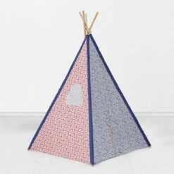 Bacati – Olivia Girls Coral Navy Play Tent For Kids/Toddlers, 100% Cotton Percale Fabric Cover
