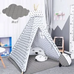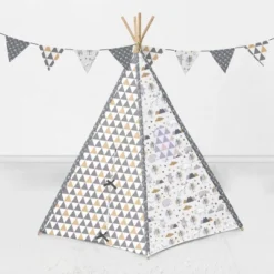 Bacati – Woodlands Gray/Beige Play Tent For Kids/Toddlers, 100% Cotton Percale Fabric Cover