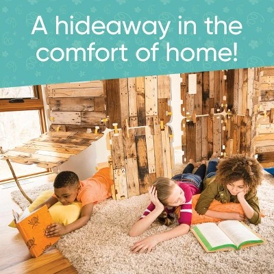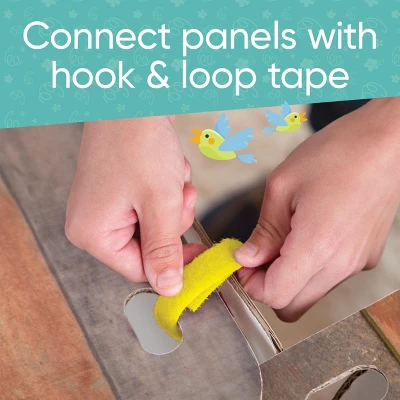 Put your pillows and blankets away; it’s time to build a real fort—or one from your fantasies! The Hearthsong 32-Panel Cabin Fantasy Forts Kit gives you so many fortiblities in constructing a stronghold of your royal dreams! Included in the kit: 32 (22” sq.) cardboard panels, 2 rolls (13’L each, cut into 6”L strips) of double-sided hook and loop tape, and 32 carton clips. 6 panels can act as a chest for your other cardboard treasures, or stow you away for a sneak attack of the first passerby you’ll peek-a-boo at. Build your fort alone or with your royal subjects.