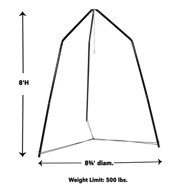 - Sturdy, powder-coated steel Family HangOut Stand measures 8¾’L x 8¾’W x 8’H and holds up to 500 lbs.
