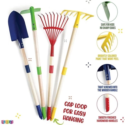 - Play22 Kids Garden Tool Set Toy 4-Piece – Shovel, Rake, Hoe, Leaf Rake, Wooden Gardening Tools For Kids Best Outdoor Toys Gift For Boys And Girls