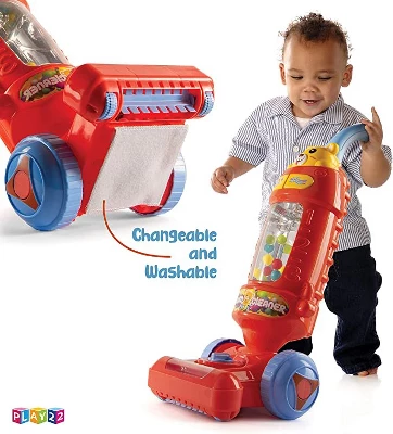 - This electronic battery-powered vacuum toy has a suitable size for kids with realistic noise, which can work really for house cleaning to add role-playing fun for toddlers. The toy cleaning set can help kids to develop independence and encouraging kids to share the responsibility of housekeeping for his families.