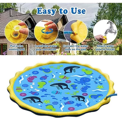 KuKu Sprinkle & Splash Play Mat Sprinkler For Kids Outdoor Water Toys For 3-12 Year Old Boys Girls Children Outdoor Party Sprinkler Toy Splash Pad