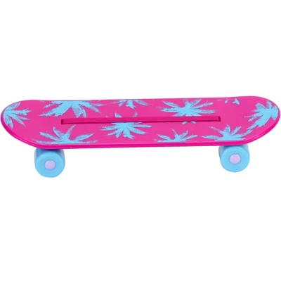 - INCLUDES: Colorful palm-patterned skateboard with working wheels – measures 8 x 2.5 x 1 inches – coordinating helmet, knee pads and stickers for a completely cool – and safe! – look.