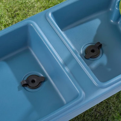 - Sand and water play area features several accessories and lid for splish-splash fun!