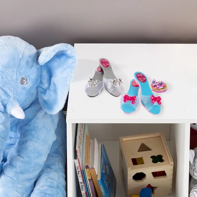 - FUN ACCESSORY SET- The princess accessory set comes with everything your child needs to complete any dress up outfit, including 4 pairs of shoes in pink, blue, gold and silver, 3 bracelets, 3 rings, and 2 pairs of earrings.